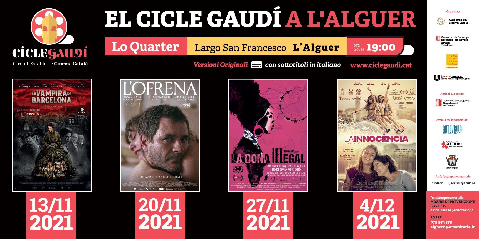 Torna El Cicle Gaudí a l’Alguer, finalmente in presenza, dopo due edizioni in streaming. Quattro appuntamenti imperdibili, quattro film che hanno partecipato al Premi Gaudí, il più importante premio cinematografico della Catalogna, saranno programmati nella Sala Conferenze de Lo Quarter da sabato 13 novembre a sabato 4 dicembre. Come le edizioni precedenti, il ciclo è stato reso possibile dalla partnership tra Società Umanitaria di Alghero, ente da sempre impegnato nella diffusione della cultura cinematografica e audiovisiva, dalla Generalitat de Catalunya Delegaciò del Govern a Italia e dalla Plataforma per la Llengua, ONG che promuove l’uso del catalano come strumento di coesione sociale, con la collaborazione dell’Académia del Cinema Català, che organizza il Premio, e il supporto della Regione Autonoma Sardegna, dell’Amministrazione Comunale di Alghero e della Fondazione Alghero.