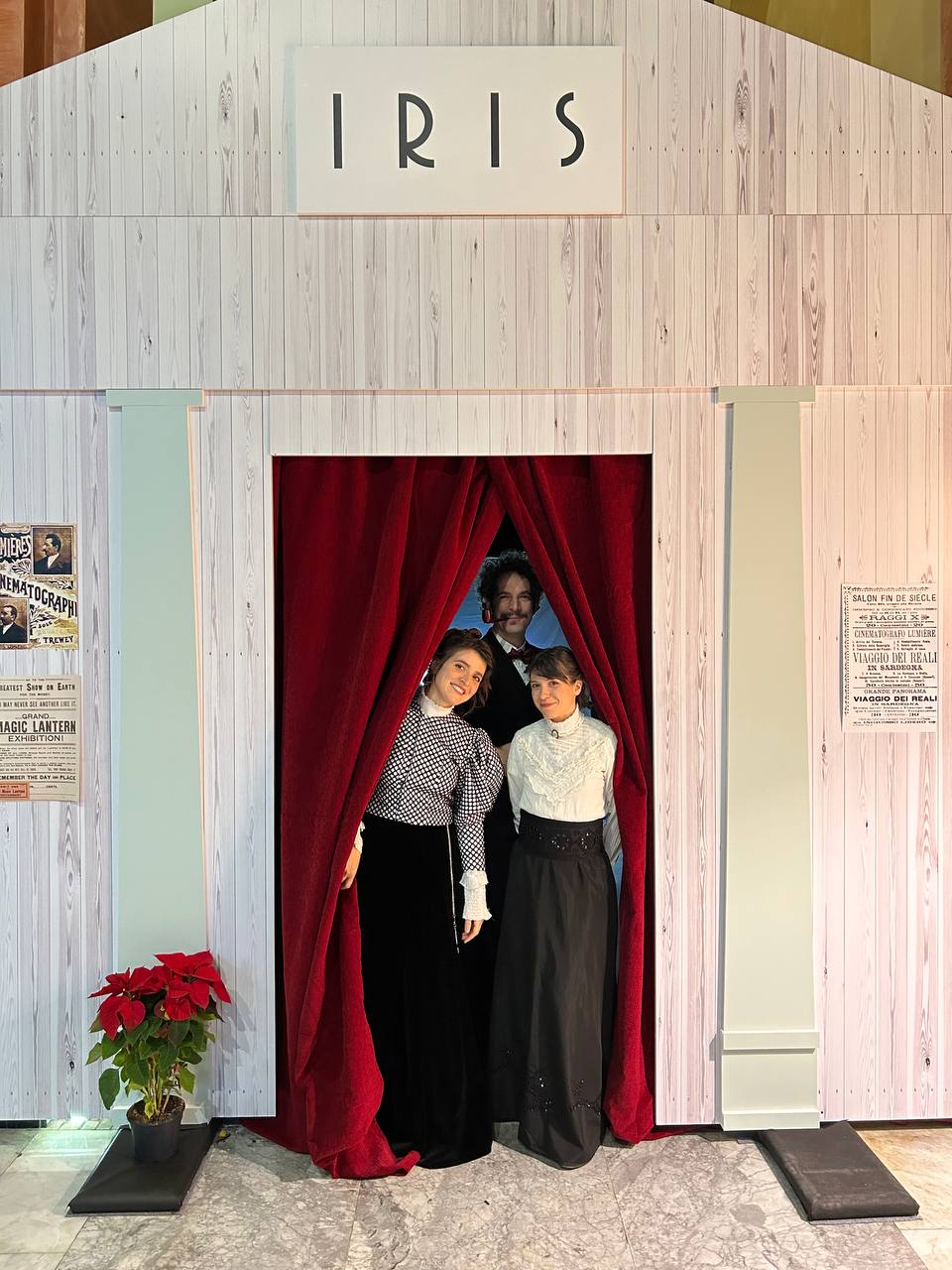 Il cinema Iris fu uno dei primi cinematografi stabili della Sardegna. Situato in via Roma angolo Largo Carlo Felice, era di proprietà di Vincenzo Mazza e dei figli Jago, Nino e Osvaldo, tutti di origine napoletana. “Messo su con discreta eleganza – scrive l’Unione Sarda nella cronaca dell’inaugurazione del Cinema avvenuta il 29 luglio 1906 – è un bel padiglione in legno, elegantissimo internamente.” All’Iris gli spettacoli erano accompagnati da un pianoforte appositamente noleggiato. Le cronache raccontano dell’attenzione che i proprietari mettevano sulla qualità degli spettacoli, tanto che quando la popolazione domandò insistentemente la proiezione de Le quattrocento farse del diavolo di George Melies, i fratelli Mazza fecero un contratto con una ditta di Parigi per assicurarsi 4 proiezioni, non poche considerando che la pellicola costava 100 lire al giorno. Nelle rare immagini esistenti il cinema Iris appare come una costruzione classicheggiante, con un portico sorretto da quattro colonne che caratterizzava l’antingresso in perfetto stile liberty. Qui vi era situata la biglietteria con esposti i prezzi per seduta: 20 centesimi i primi posti, 10 ai secondi e 5 ai terzi e “du soddus” militari e studenti. L’Iris scomparirà nella seconda metà degli anni ’20 per lasciare il posto ai grandi magazzini della Rinascente.