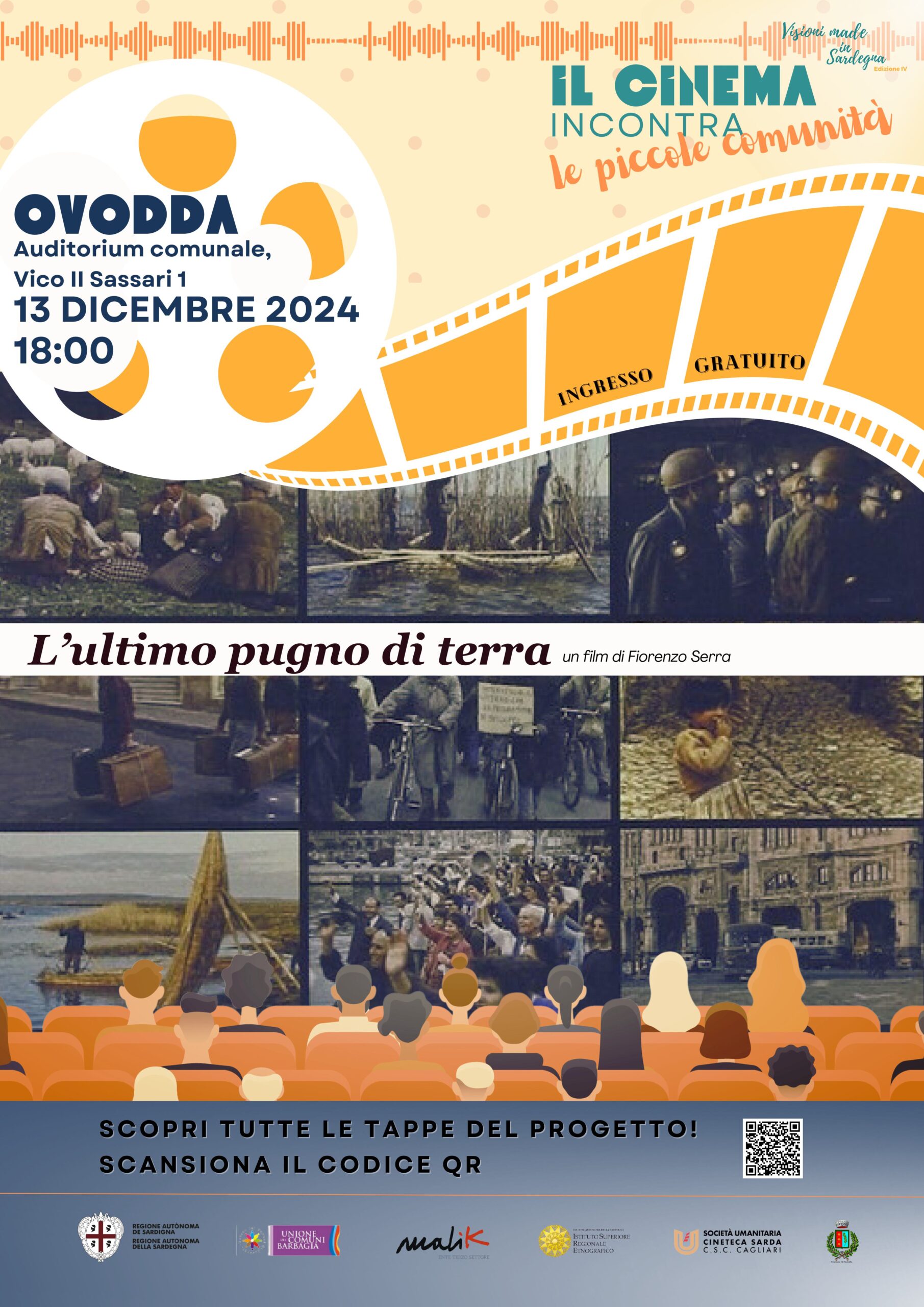 Ha preso avvio il 23 novembre l’edizione 2024 della rassegna di Malik ETS che porta il cinema made in Sardegna nei paesi dell’interno dell’Isola. Si tratta del progetto itinerante “Visioni made in Sardegna – Il cinema incontra le piccole comunità”, finanziato dalla Regione Autonoma della Sardegna attraverso la L.R. 20 settembre 2006, n. 15, annualità 2024, cofinanziato dall’Unione Comuni Barbagia, con il patrocinio e il partenariato dell’ISRE – Istituto Superiore Regionale Etnografico e il sostegno della Società Umanitaria-Cineteca Sarda.