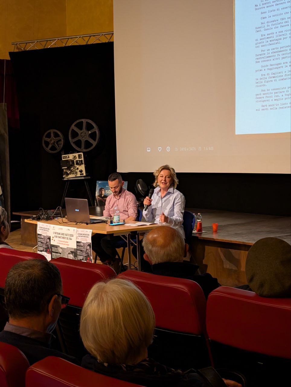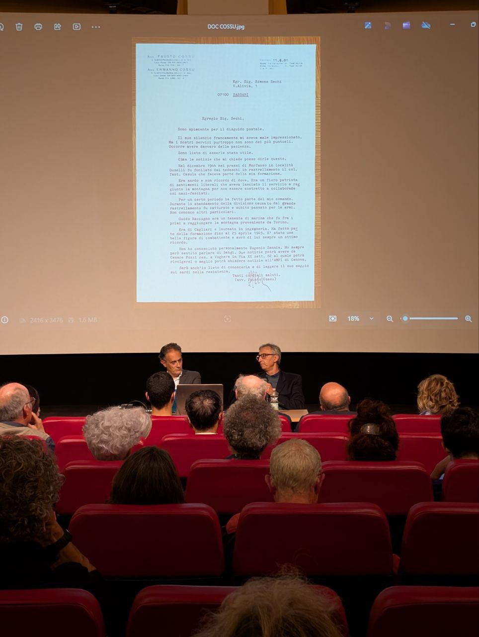 - saluti di Andrea Dettori, Capo di Gabinetto dell’Assessore della Pubblica istruzione, beni culturali, informazione, spettacolo e sport, di Antonello Zanda, direttore CSC Cagliari Soc. Umanitaria – Cineteca Sarda e di Antonello Murgia dell’Anpi di Cagliari