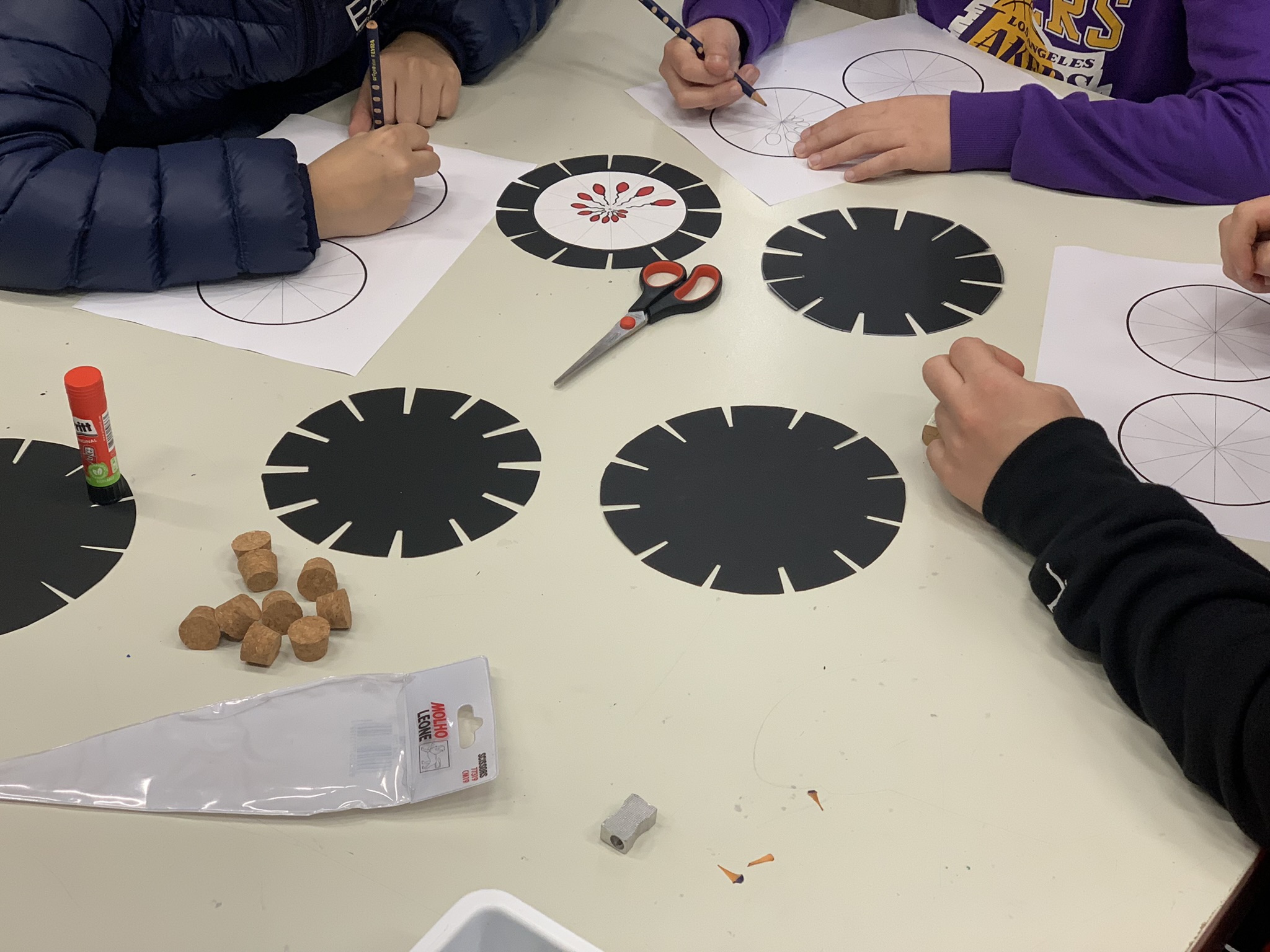 Preparare i due dischi del fenachistoscopio e applicare le immagini in sequenza lungo la circonferenza.
