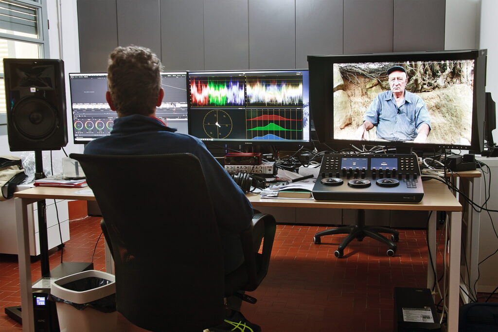 Tra i laboratori, anche quello di montaggio e post produzione, a disposizione dello sviluppo di progetti cinematografici nel e del territorio: una workstation Dual Xeon con hardware e software Black Magic Design con tastiera e panello per la color correction, 2 monitor sistema e monitor color.