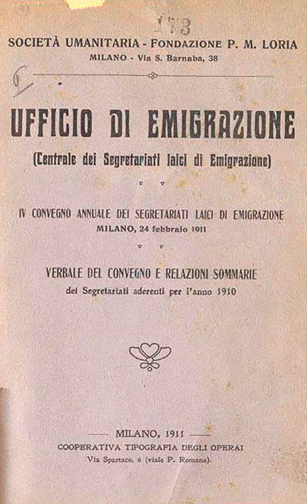Nel 1907 venne inoltre inaugurata a Milano la Casa degli Emigranti, strategicamente situata alle spalle della vecchia Stazione Centrale. Si stima che gli assistiti siano stati in media 50.000 ogni anno, con un picco di oltre 90.000 nel 1911.