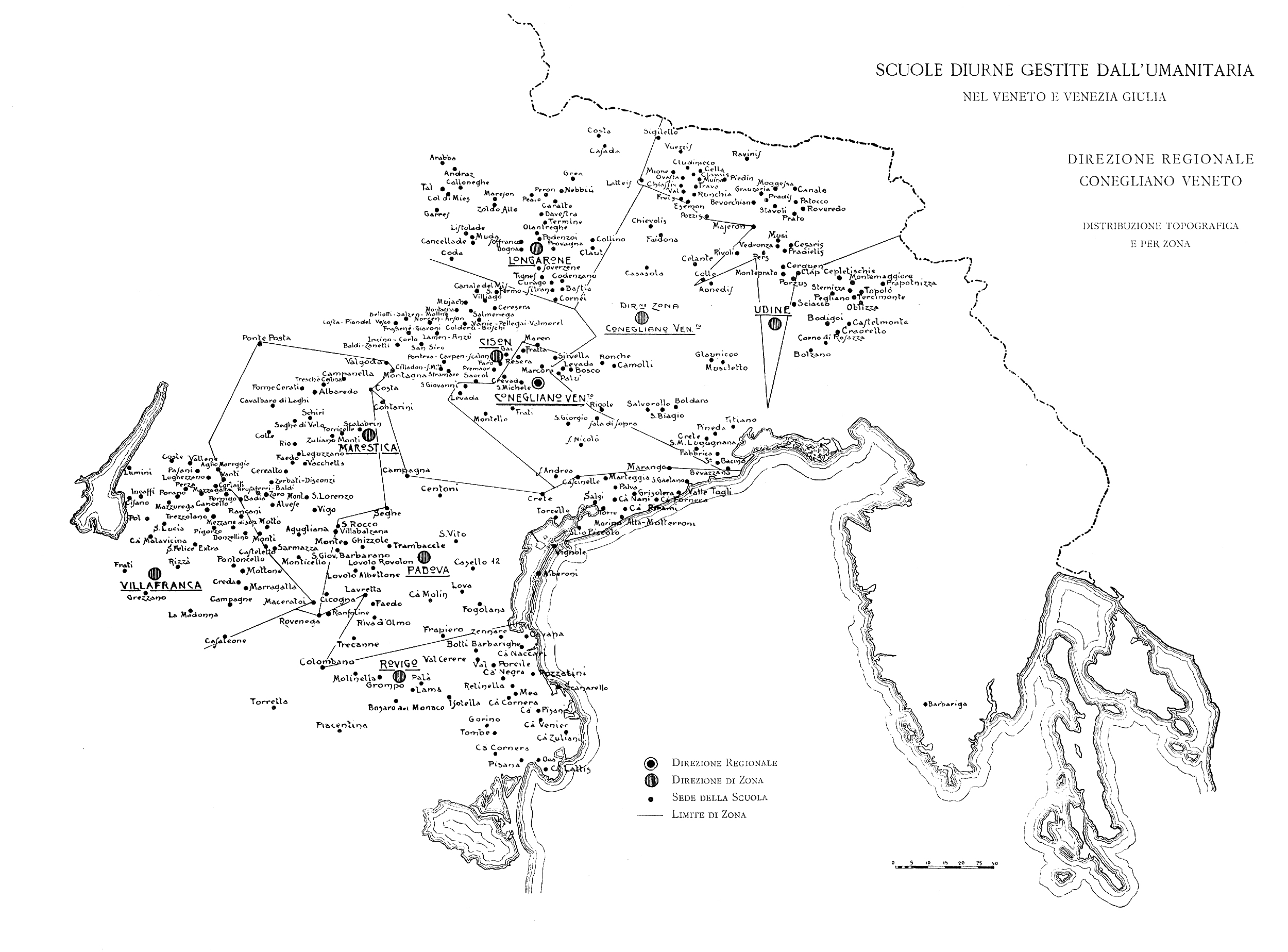 L’anno successivo l’Ente milanese veniva incaricato di curare anche l’organizzazione delle scuole diurne, serali e festive di tutto il Veneto (in totale 139 serali, 9 diurne, 6 festive, nelle province di Padova, Rovigo, Treviso, Udine e Verona) provvedendone alla direzione didattica e alla vigilanza tecnica generale.