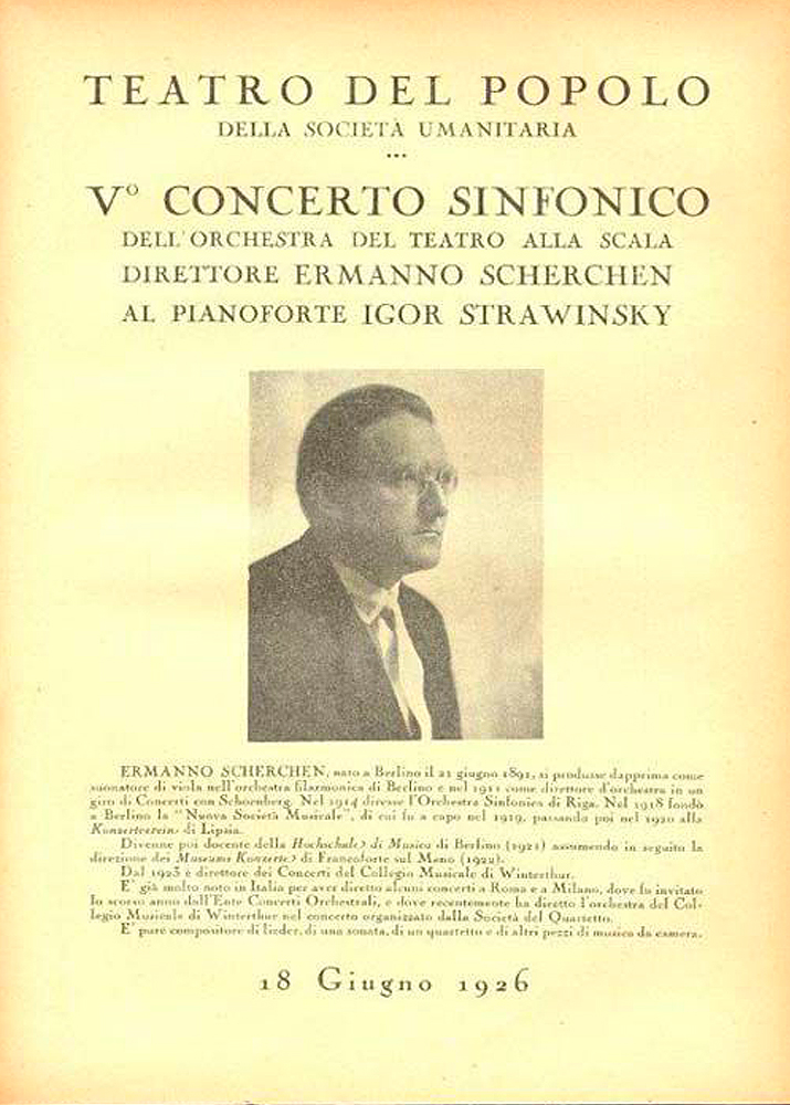 Il concerto inaugurale è un autentico lancio promozionale in grande stile, un evento che si rinnoverà anno dopo anno grazie alla preziosa collaborazione del Teatro alla Scala, i suoi professori, i direttori (Toscanini, Gui, de Sabata, Serafin), impegnati ad assicurare la continuità dei concerti da camera e orchestrali, che faranno conoscere e apprezzare i grandi compositori, insieme ai più grandi interpreti del tempo, come Arthur Rubinstein, Igor Stravinskj, Bela Bartòk, Arturo Benedetti Michelangeli, Edwin Fisher e tanti altri.