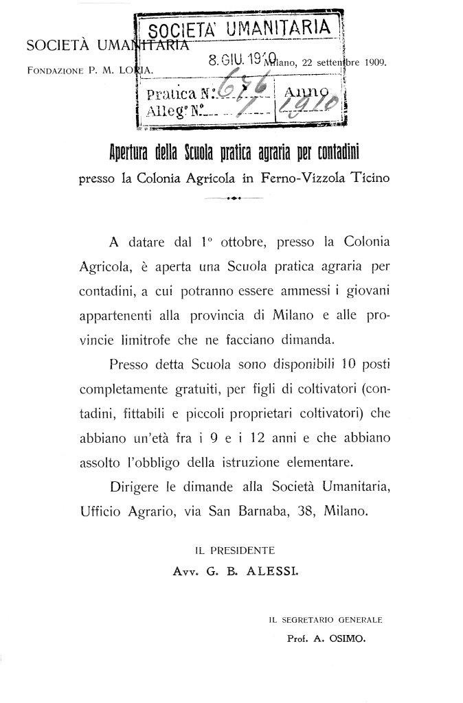 Nell’ottobre 1907 si accoglievano i primi disoccupati, e in quei visi affranti dai patimenti, dalla miseria nera, dal lavoro negato, si percepiva tutta l’angoscia “di chi è caduto martire delle ingiustizie sociali”; i disoccupati erano individuati attraverso gli Uffici di collocamento di Milano e fra elementi “provenienti dalla terra o che alla terra avessero serio intendimento di dedicarsi”.