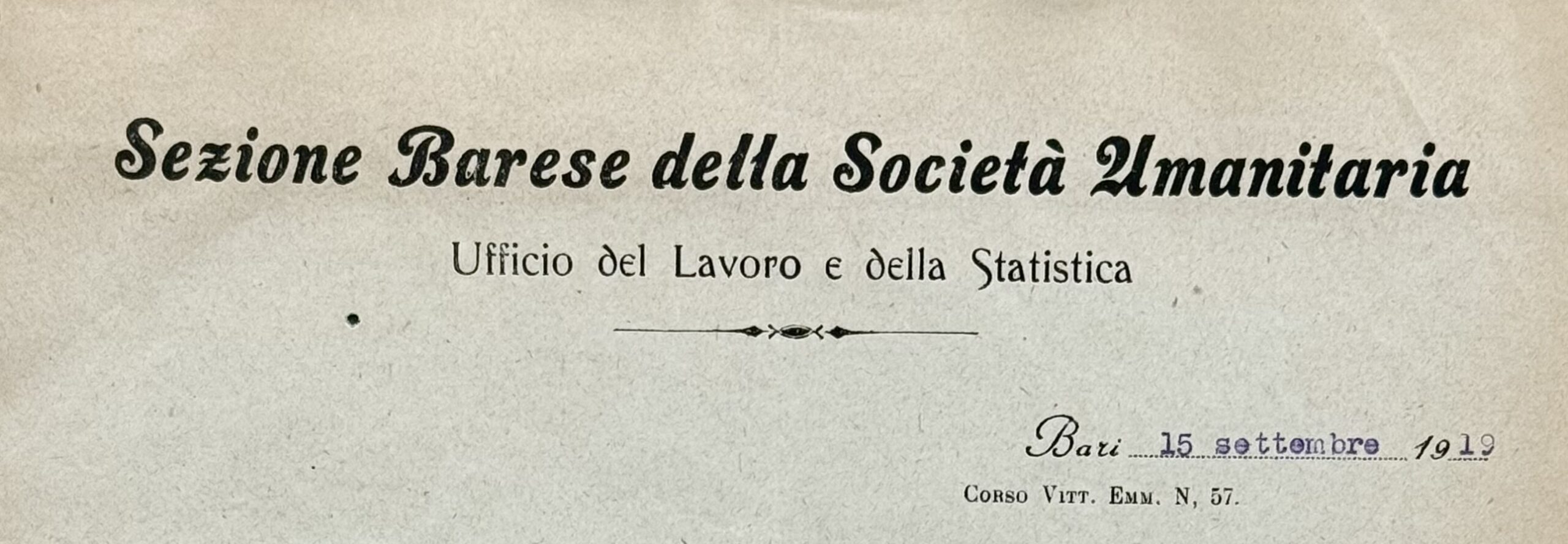 “La Sezione può affermare con soddisfazione che qualunque iniziativa sorta a Bari, e in provincia nel campo dell’assistenza sociale e per l’applicazione delle leggi sul lavoro, è partita da essa: ad esempio fu la Sezione a promuovere la costituzione e il funzionamento dei vari organismi paritetici ed arbitrali istituiti in base ai nuovi provvedimenti sociali ed è la Sezione a gestire l’Istituto barese di assistenza tecnico-medico-legale per gli infortuni sul lavoro, riconosciuto dal Ministero del Lavoro. La tutela degli emigranti fu validamente assunta: pratiche per ricupero di bagagli, ricerche d’emigranti all’estero, liquidazioni d’indennità, visti consolari, esame di contratti di lavoro, rilascio di passaporti, furono trattate ed esaurite per parecchie centinaia.