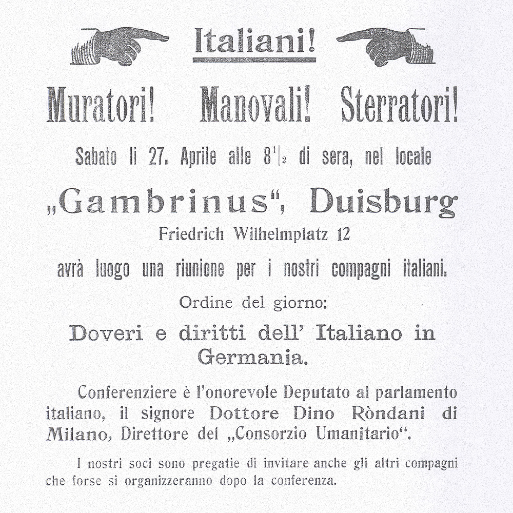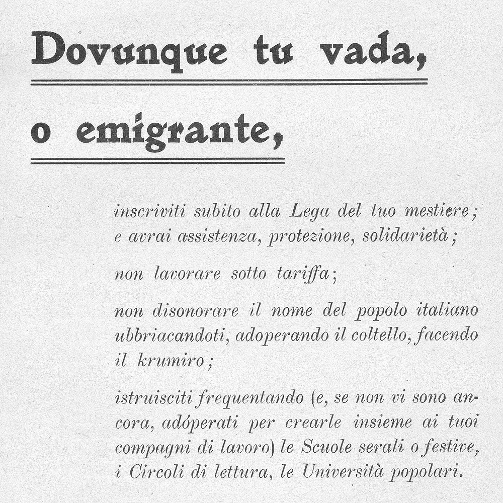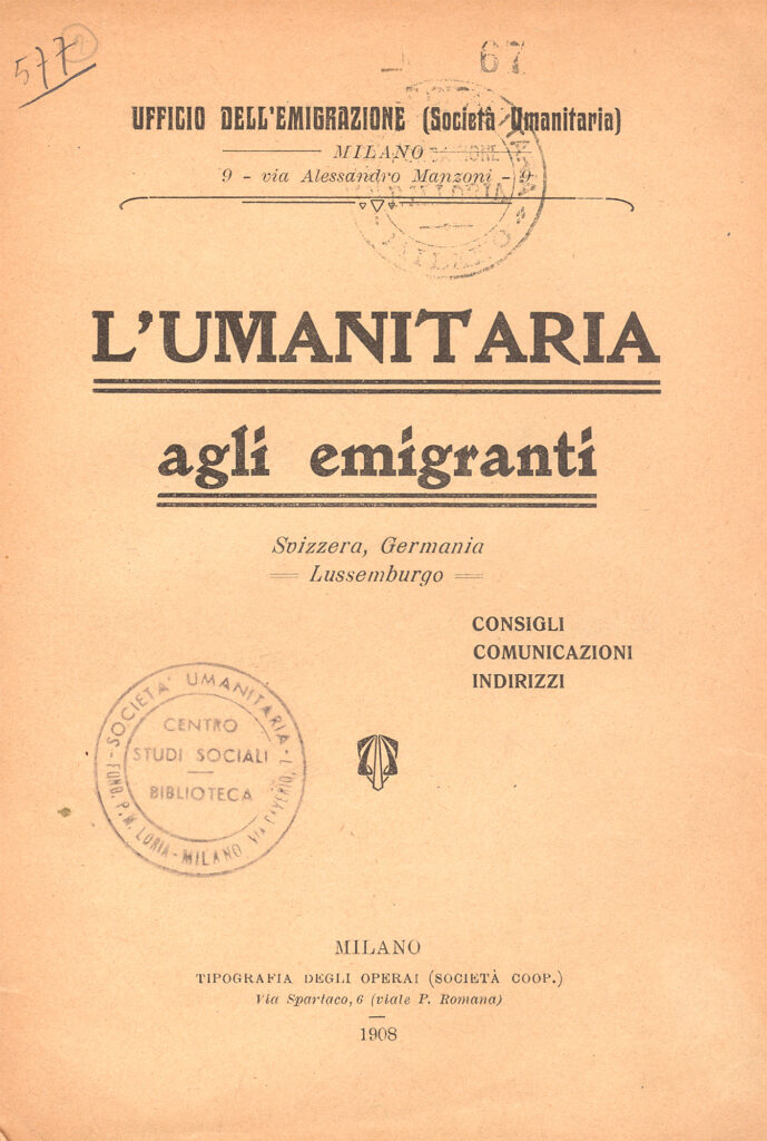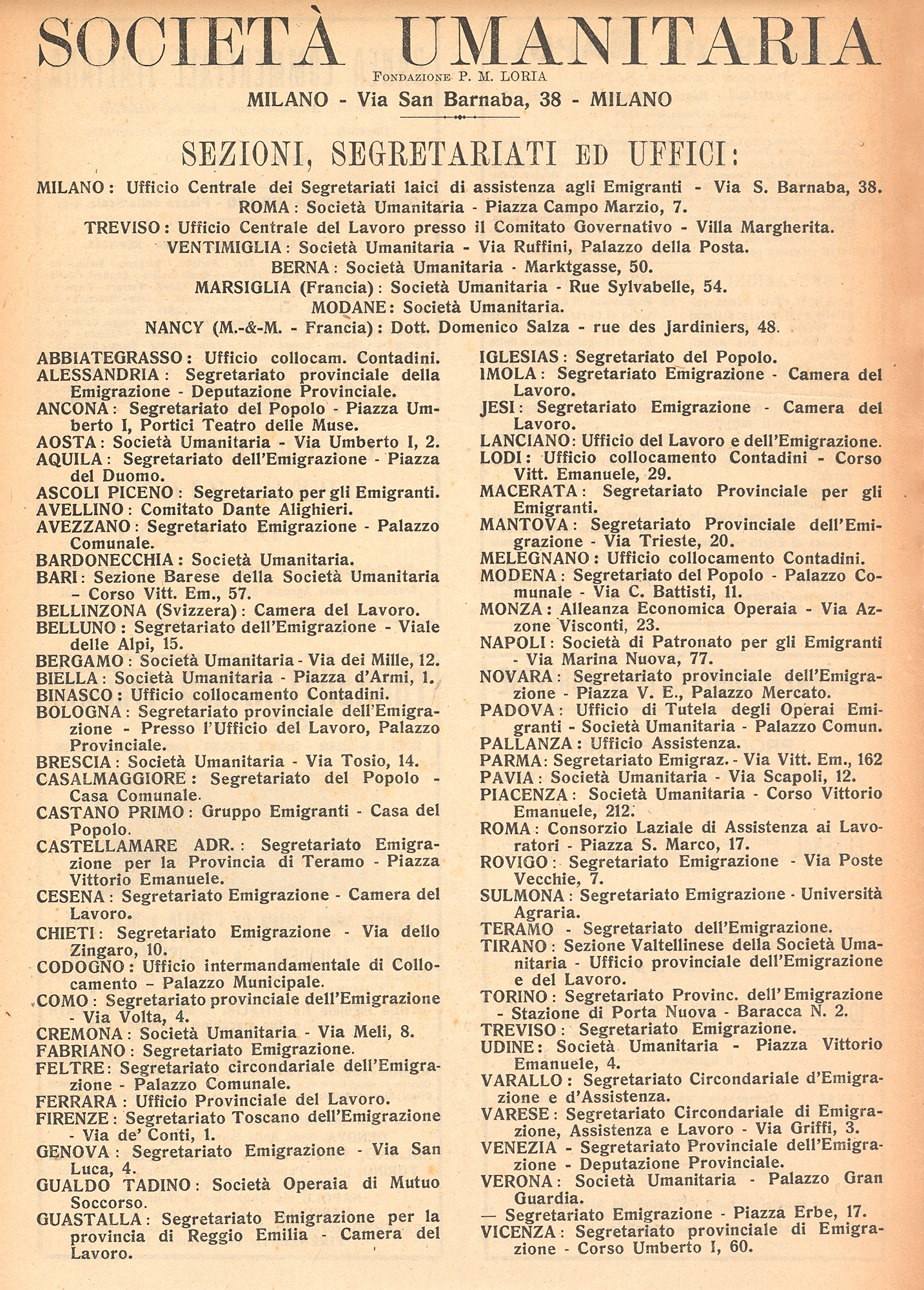 Nasce il Consorzio per la tutela dell’emigrazione temporanea in Europa, un organismo interregionale che l’Umanitaria decide di dedicare per la prima volta all’emigrazione continentale e non a quella transoceanica. Nel giro di pochi anni l’Umanitaria diventa la più importante istituzione laica in materia di emigrazione.