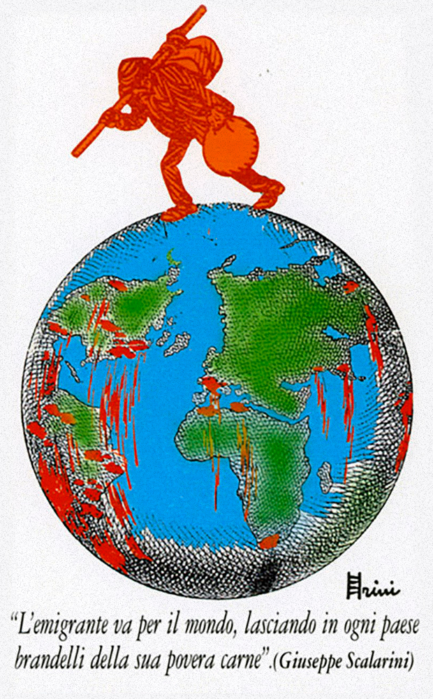 Una vignetta dedicata agli emigranti, disegnata da Giuseppe Scalarini, caricaturista e disegnatore satirico.