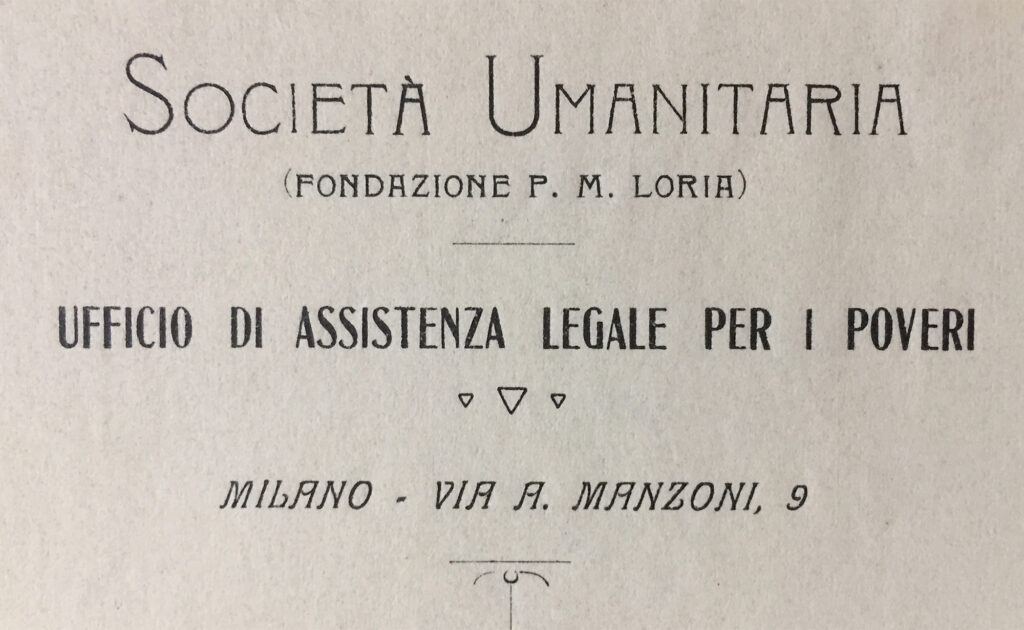 Un gruppo di avvocati lungimiranti (tra cui Emilio Caldara ed Enrico Gonzales), con il sostegno dell’Umanitaria creano un Ufficio di Assistenza Legale per i poveri di Milano e delle limitrofe campagne per “proteggere gli indigenti da cavallocchi sfruttatori, consigliarli ed assisterli nelle vertenze che insorgono, salvarli in tempo dall’avventurarsi in liti disastrose”.