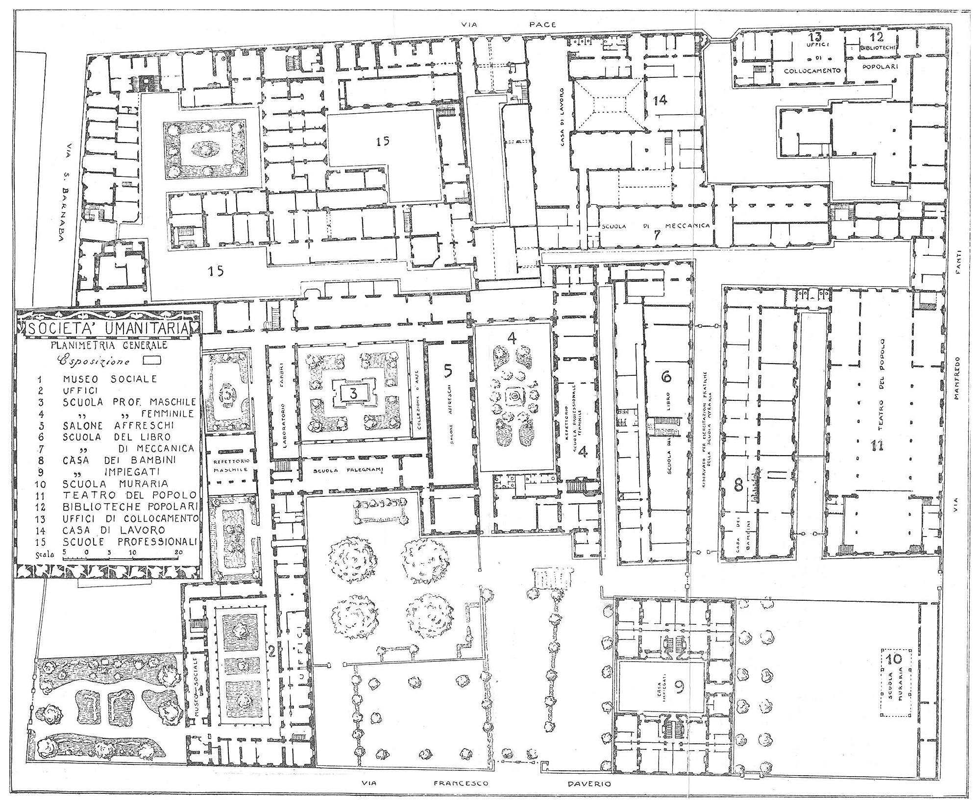 Nel giro di pochi anni, acquisendo terreni e ristrutturando edifici preesistenti, la sede dell’Umanitaria è identificata come “il quadrilatero della solidarietà e del lavoro”.