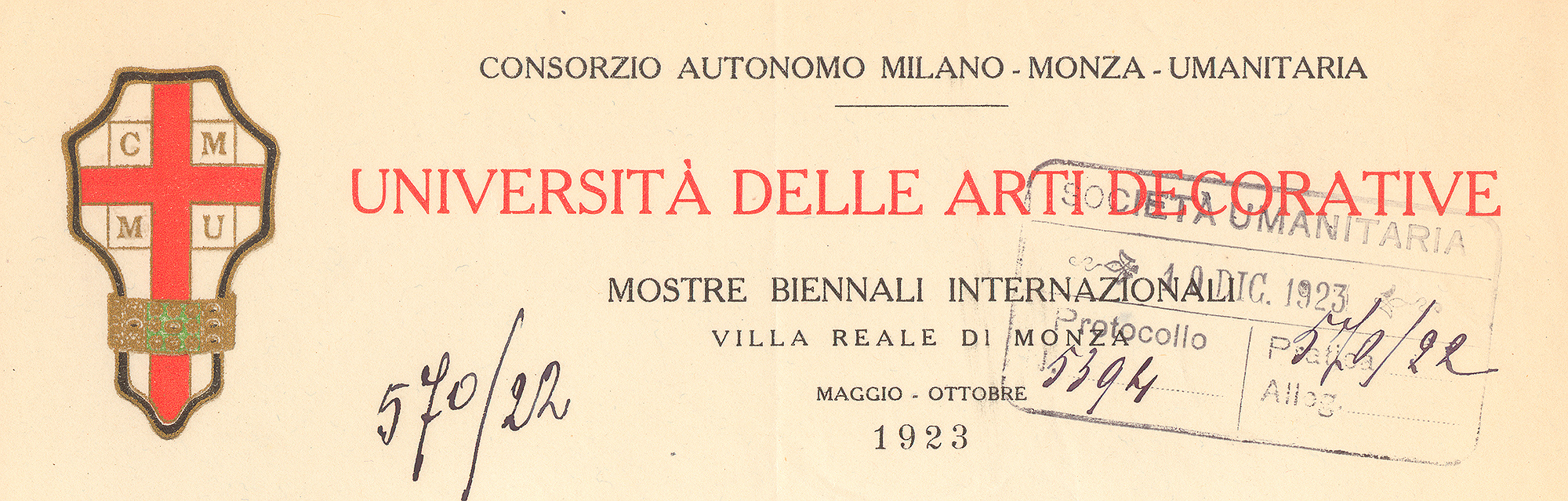 Alla Villa Reale di Monza si tiene la prima Mostra Biennale Internazionale delle Arti Decorative. Per tre edizioni (1923, 1925, 1927), la Villa Reale diventa una scenografia unica nel suo genere, con la vetrina della migliore produzione nazionale ed europea: arredi, ferro battuto, ceramica, vetrate artistiche, grafica, pittura, oreficeria, lavori di tessitura e ricamo.