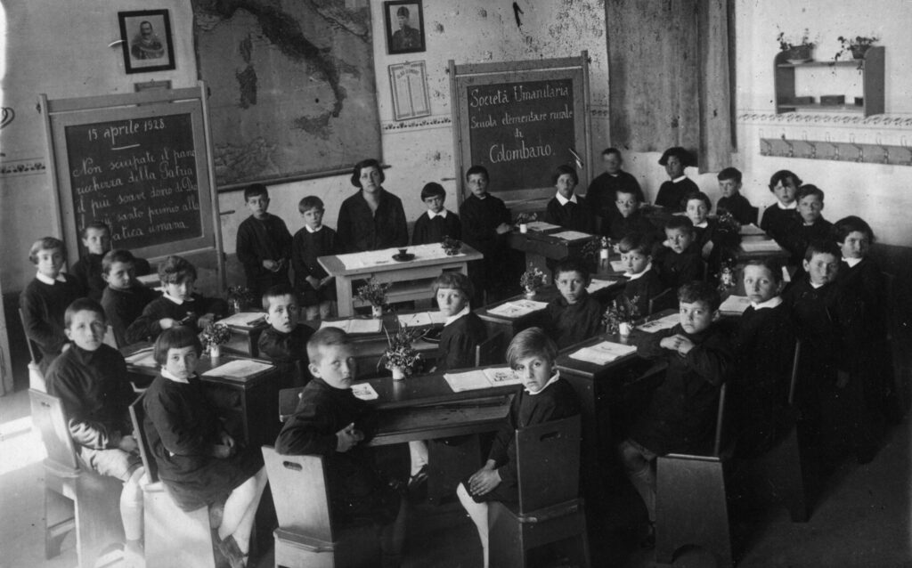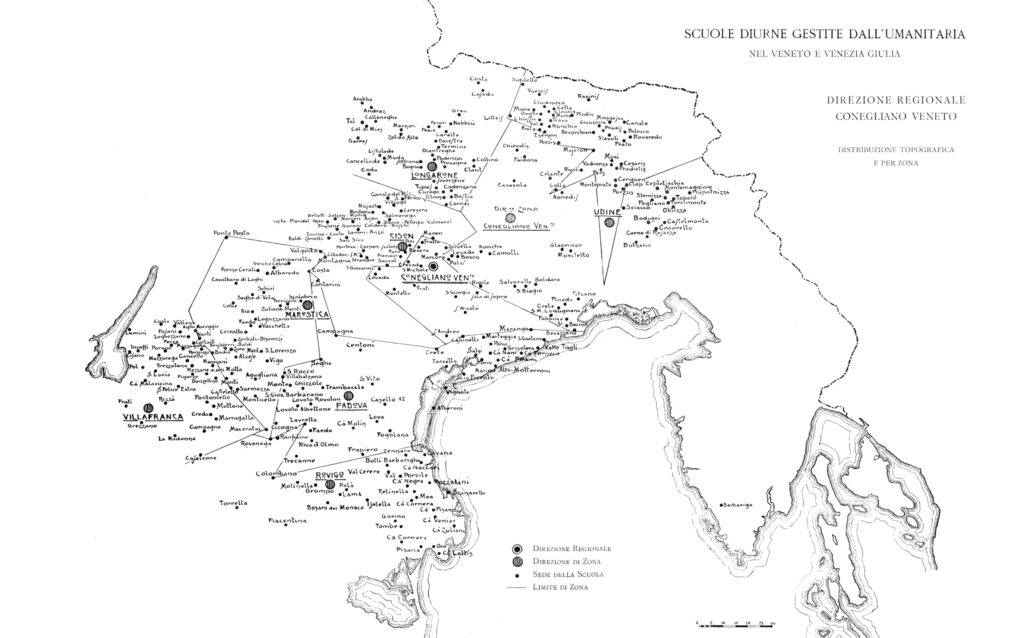 Il Ministro Giovanni Gentile comunica all’Umanitaria che è stata scelta come associazione per l’Opera contro l’analfabetismo. L’Umanitaria decide di concentrare la sua azione in Puglia ed in Veneto, gestendo centinaia di corsi e scuole: nel 1927-28 le scuole sono 321 e la popolazione scolastica arriva ad oltre 11.000 studenti.