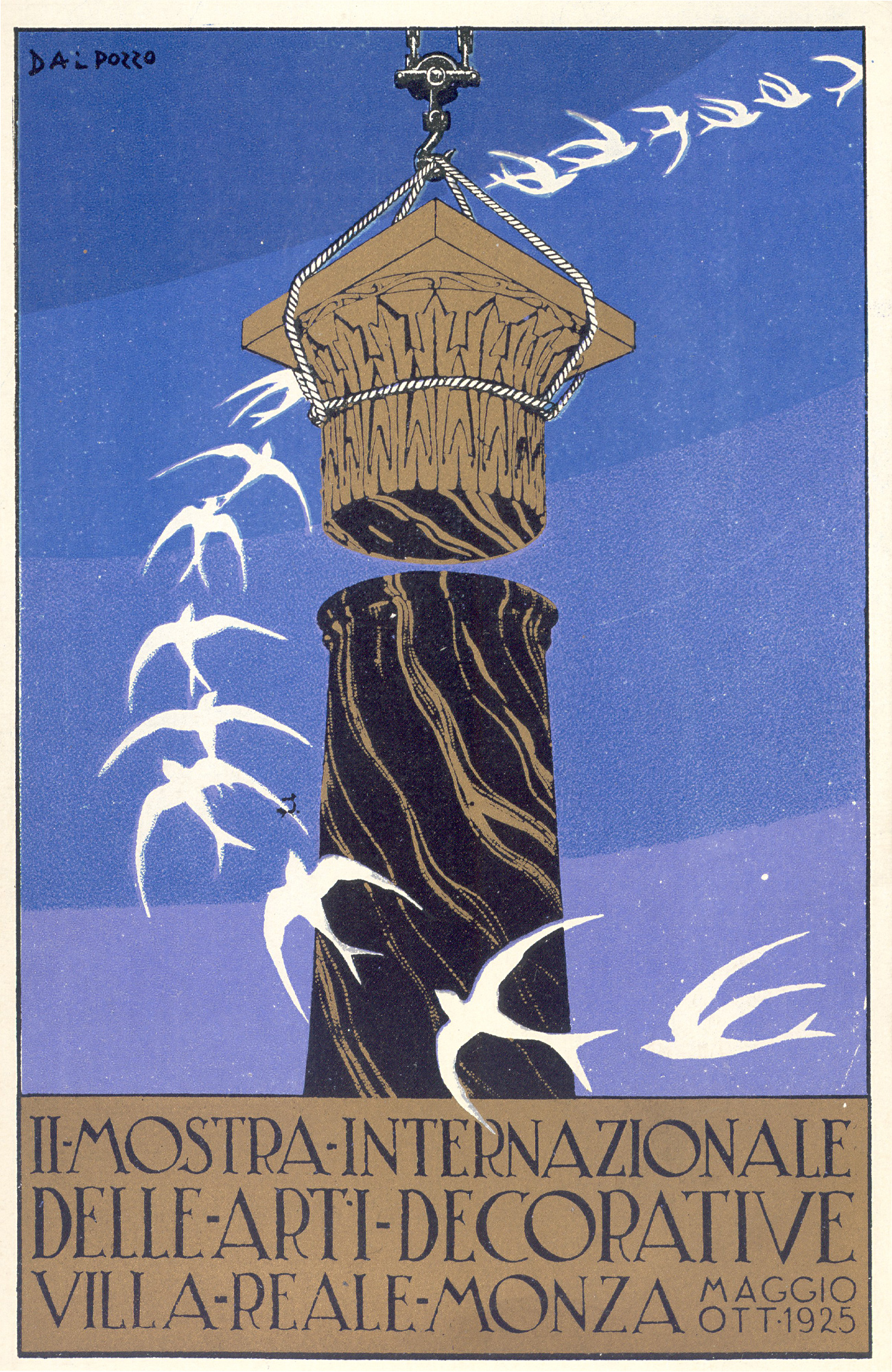 Alla Villa Reale di Monza si tiene la prima Mostra Biennale Internazionale delle Arti Decorative. Per tre edizioni (1923, 1925, 1927), la Villa Reale diventa una scenografia unica nel suo genere, con la vetrina della migliore produzione nazionale ed europea: arredi, ferro battuto, ceramica, vetrate artistiche, grafica, pittura, oreficeria, lavori di tessitura e ricamo.