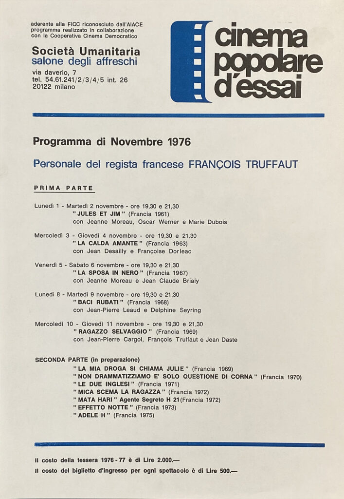 L’esperimento de “Il Barcone” si trasforma in “Cinema Popolare d’Essai”: per tutto l’anno si organizzano rassegne di film, seguite sempre da animate discussioni con critici e registi.